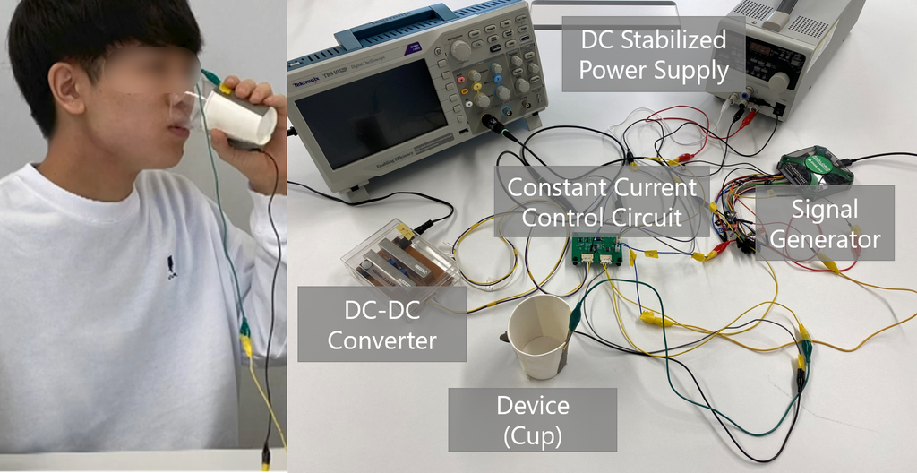 Taste is a sensory organ with many unexplored aspects. In recent years, much research has been conducted on the use of electricity to present and change the sense of taste. If we can artificially create and freely control taste and eating and drinking experiences using electricity, we may be able to improve the quality of life in our daily lives and our sense of reality in the artificial world. Therefore, we are conducting research on increasing the salty taste and amplifying the carbonation of carbonated beverages using electrical stimulation.